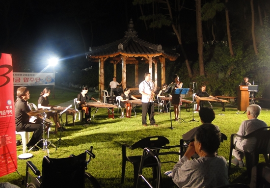 부산 그랜드자연요양병원은 3일 일파가야금합주단 초청공연 무대를 마련했다. 원내 파이에온 잔디광장에서 열린 이번 공연은 8∼12일 '제1회 부산마루국제음악제'에 앞서 부산 시내 명소와 삶의 현장을 찾아가 여는 변두리 콘서트(fringe concert)의 하나. 1∼11일 부산 곳곳에서 열린 프린지 콘서트는 약 900여 명의 연주자들이 삶의 현장을 찾아 시민과 함께 하는 콘서트로 부산마루국제음악제를 홍보하는 견인차 역할을 맡고 있다. 본 콘서트는 8∼12일 시민회관·을숙도문화회관·금정문화회관·영도문화예술회관에서 열릴 예정이다. 장명화 부산대 교수의 해설로 진행된 이날 공연에서는 아무르강의 물결·카츄사·파헤벨의 캐논·한오백년·비틀즈 모음곡·부산갈매기 등을 비롯해 북한에서 편곡한 25현 가야금 독주곡 '도라지' 등이 오랜 시간 요양 중인 환자들의 귀를 즐겁게 했다. 나용승 원장은 "부산의 새로운 문화행사인 부산마루국제음악제 탄생을 계기로 요양병원 병상에 있는 환우들이 공연과 만날 수 있게 돼 기쁘다"고 밝혔다. [출처:의협신문]