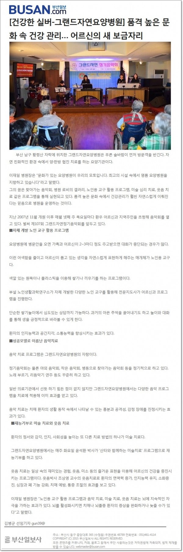 [부산일보] 건강한 실버 - 품격 높은 문화 속 건강 관리 페이지 정보 작성자 최고관리자 작성일16-12-09 15:27 조회1,789회 댓글0건 이전글 다음글 목록 본문 [출처 : 부산일보 2016.11.24 제29면 김병군 선임기자] 댓글목록 등록된 댓글이 없습니다. 이전글 다음글 목록