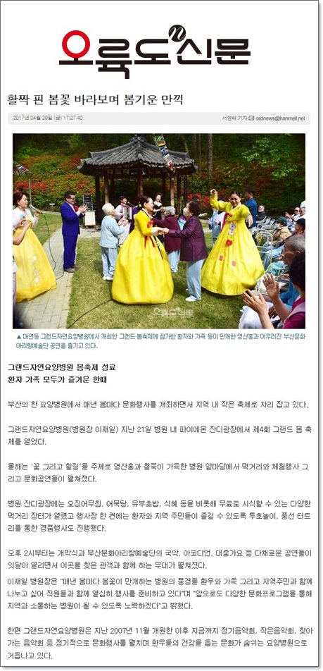 [오륙도 신문] 그랜드 봄축제 - 활짝 핀 봄꽃 바라보며 봄기운 만끽 페이지 정보 작성자 최고관리자 작성일17-05-22 12:27 조회1,378회 댓글0건 이전글 다음글 목록 본문 [출처 : 오륙도 신문 2017.4.27 제75호 제6면 서영태기자] 댓글목록 등록된 댓글이 없습니다. 이전글 다음글 목록