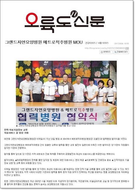 [오륙도신문] 그랜드자연요양병원 메트로적추병원 MOU 페이지 정보 작성자 최고관리자 작성일17-09-07 15:47 조회1,410회 댓글0건 이전글 다음글 목록 본문 [출처 : 오륙도 신문 2017.8.28 제82호 제7면 서영태기자] 댓글목록 등록된 댓글이 없습니다. 이전글 다음글 목록