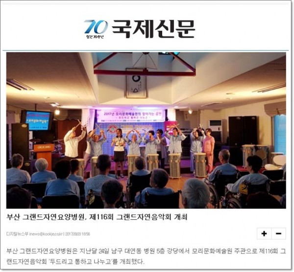 [국제신문] 그랜드자연요양병원 '어르신과 함께 공연' 페이지 정보 작성자 최고관리자 작성일17-09-07 15:51 조회1,415회 댓글0건 이전글 다음글 목록 본문 [출처 : 국제신문 2017.9.4 제27면 사람&이야기] 댓글목록 등록된 댓글이 없습니다. 이전글 다음글 목록