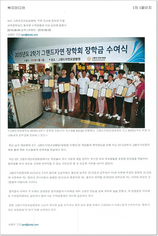 [복지미디어] 직원 자녀에 장학금 전달, 지역 장학회도 참여해. 페이지 정보 작성자 최고관리자 작성일15-08-19 11:26 조회1,724회 댓글0건 이전글 다음글 목록 본문 [출처 : 복지미디어 2015.8.5 서재민 기자] 댓글목록 등록된 댓글이 없습니다. 이전글 다음글 목록