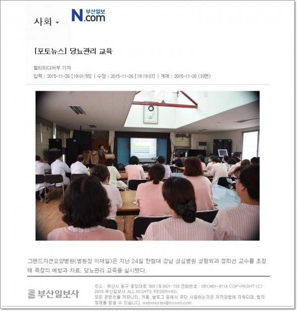 [부산일보] 강남 성심병원 정희선교수 초빙 욕창과 당뇨 발관리 교육 열어. 페이지 정보 작성자 최고관리자 작성일15-12-24 11:14 조회2,180회 댓글0건 이전글 다음글 목록 본문 [출처 : 부산일보 2015.11.26 제33면] 댓글목록 등록된 댓글이 없습니다. 이전글 다음글 목록