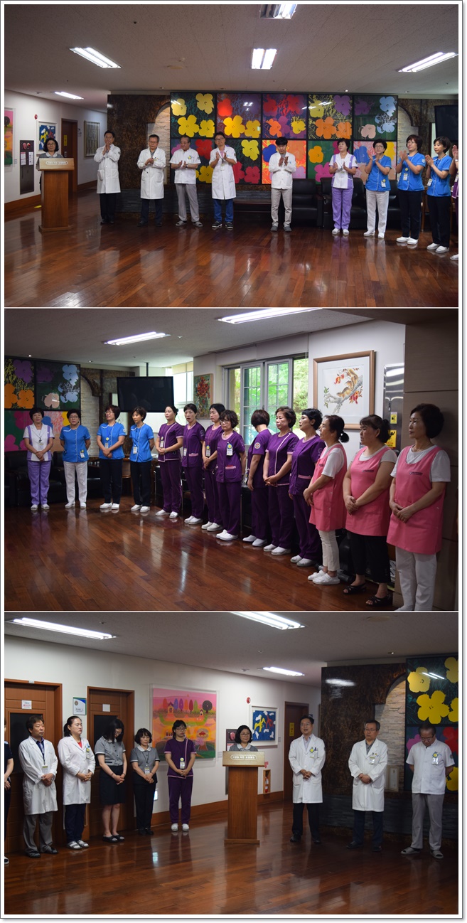 그랜드자연요양병원은 7월 1일 1층 로비에서 전직원들이 참석한 가운데 그랜드자연 월례회를 가졌다. 이재일 병원장은 날씨가 더워짐에 있어 어르신들의 음식물 관리와 건강관리에 더 각별한 주의를 당부하였으며. 이어서 신입직원들의 인사가 이어졌고 7월의 시작을 준비하는 마음으로 "그랜드 그랜드 힘!"의 구호와 함께 월례회를 마쳤다.