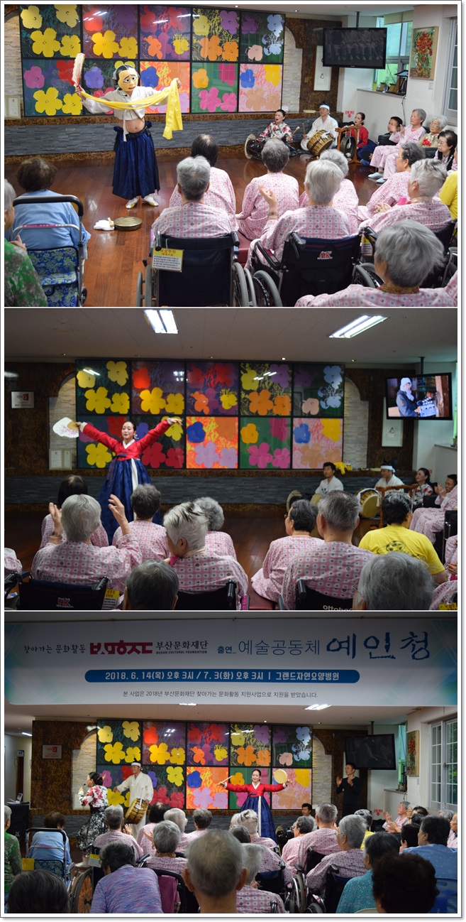 7월의 작은음악회 - 전통예술 "예인청" 공연 페이지 정보 작성자 최고관리자 작성일18-07-13 10:27 조회1,332회 댓글0건 이전글 다음글 목록 본문 전통예술 "예인청"의 공연이 7월 3일 그랜드자연요양병원 1층 로비에서 열렸다.어르신들이 좋아하시는 부채춤, 북춤을 비롯하여 각설이 타령 등으로 즐거운 시간을 마련했다. 댓글목록 등록된 댓글이 없습니다. 이전글 다음글 목록