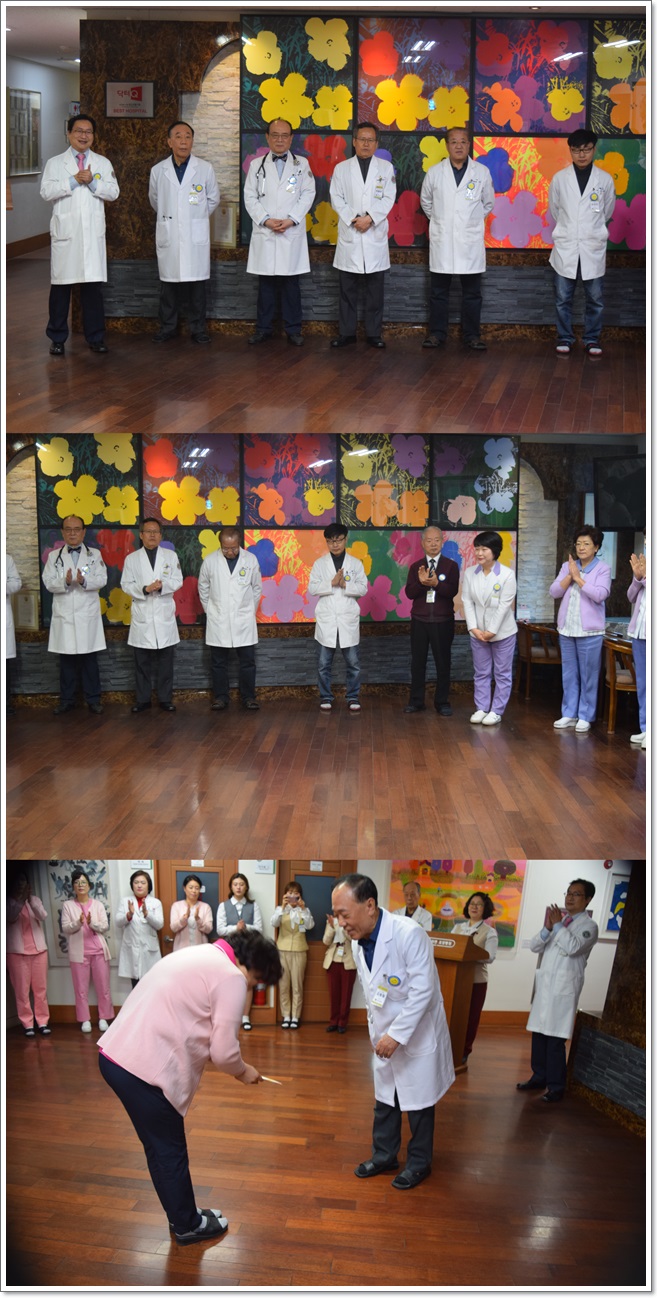 12월 1일 그랜드자연요양병원은 1층 로비에서 전직원들이 참석한 가운데 그랜드자연 12월 월례회를 가졌다. 이날 이재일 병원장은 한해를 잘 마무리하는 12월이 될 것을 강조하며 내년을 준비하는 한달을 만들자고 인사에 대신하였다.