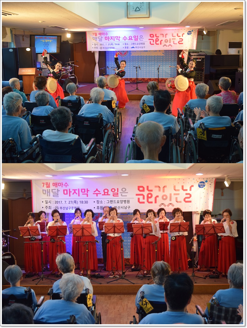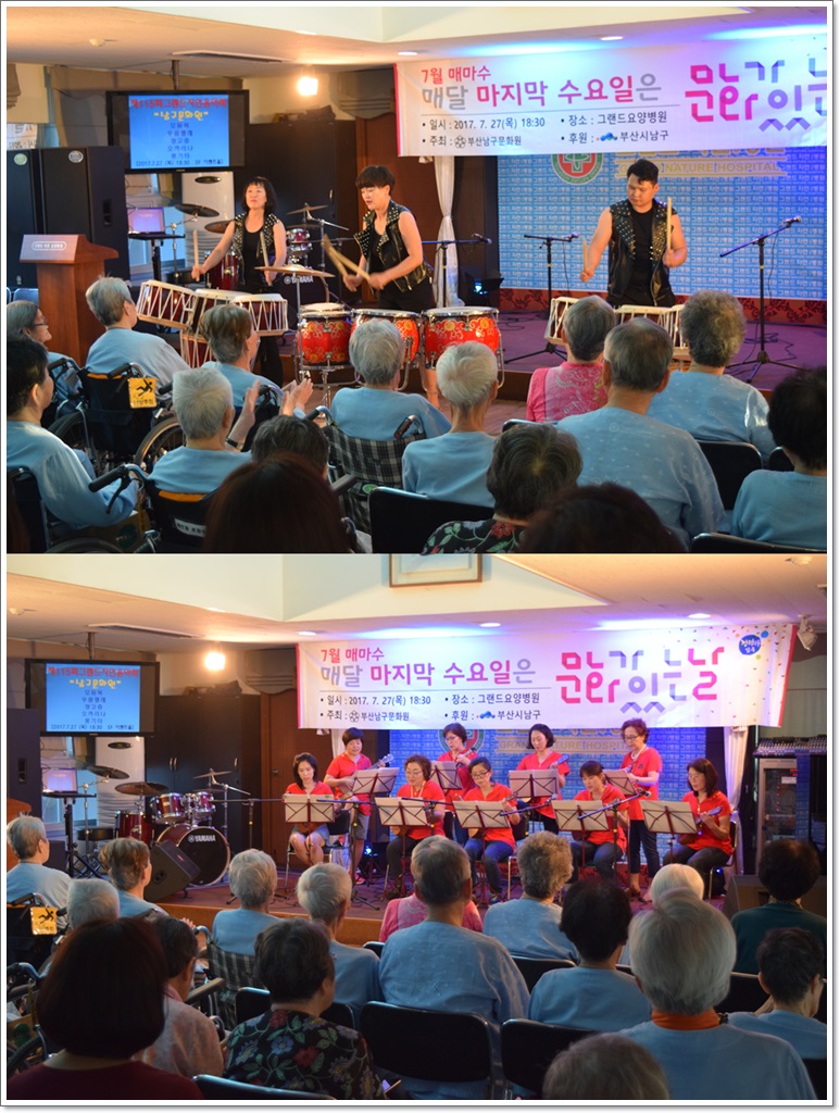 제115회 그랜드자연음악회 - 남구문화원 페이지 정보 작성자 최고관리자 작성일17-08-16 14:49 조회1,250회 댓글0건 이전글 다음글 목록 본문 지난 7월 27일 그랜드자연요양병원은 <남구문화원>의 공연으로 제115회 그랜드자연음악회를 열었다. 이날 공연은 무형문화재 제6호 이수자들로 구성된 "더 굿"팀의 모듬북으로 무대를 열어 우쿨렐레, 장고춤, 오카리나 등의 연주와 즐거운 통기타 연주를 마지막으로 무대를 꾸몄다. 댓글목록 등록된 댓글이 없습니다. 이전글 다음글 목록