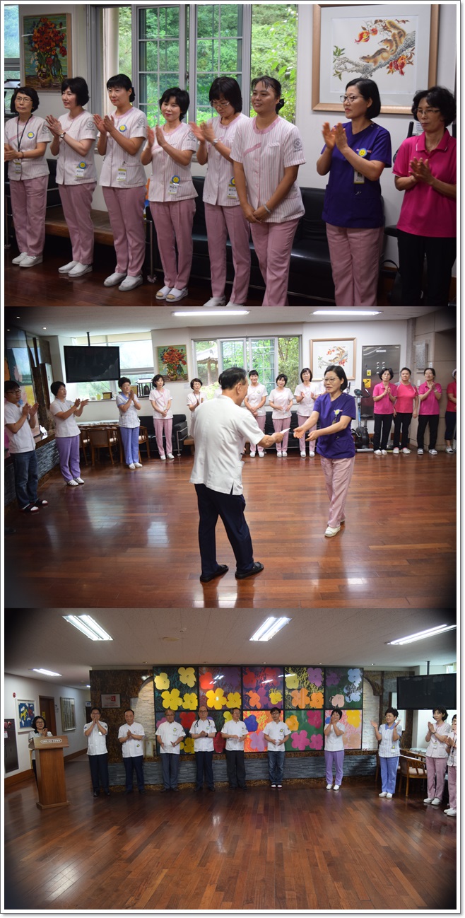 그랜드자연요양병원은 지난 9월 1일 1층 로비에서 전직원들이 참석한 가운데 그랜드자연 월례회를 가졌다. 이재일 병원장은 환절기 어르신들의 건강 관리에 만전을 기하자고 강조하였으며. 이어서 신입직원들의 인사가 이어졌고 9월에 생일을 맞이한 직원들을 축하하며 작은 정성으로 마련된 선물이 전달되었다.