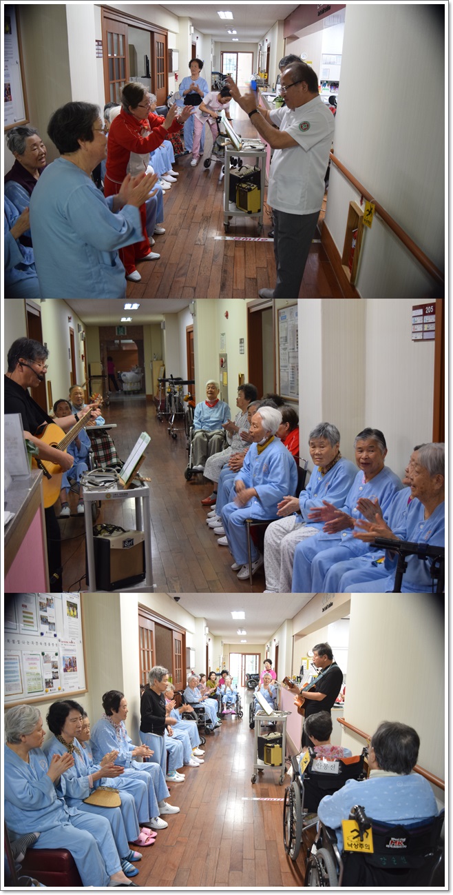 6월의 병동으로 찾아가는 작은 음악회 페이지 정보 작성자 최고관리자 작성일17-06-16 09:43 조회1,266회 댓글0건 이전글 다음글 목록 본문 그랜드자연요양병원에서는 거동이 힘든 어르신들을 위해 병동 및 재활센터로 찾아가서 여는 병동으로 찾아가는 작은 음악회를 열고 있다. 댓글목록 등록된 댓글이 없습니다. 이전글 다음글 목록