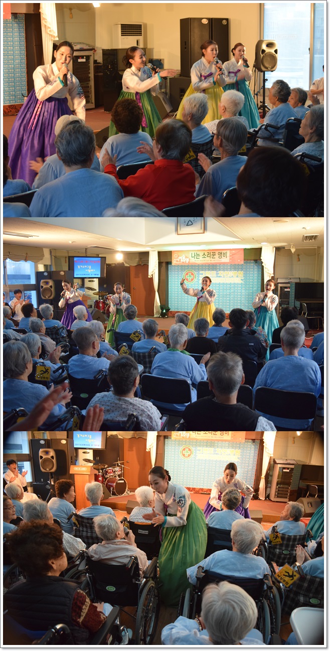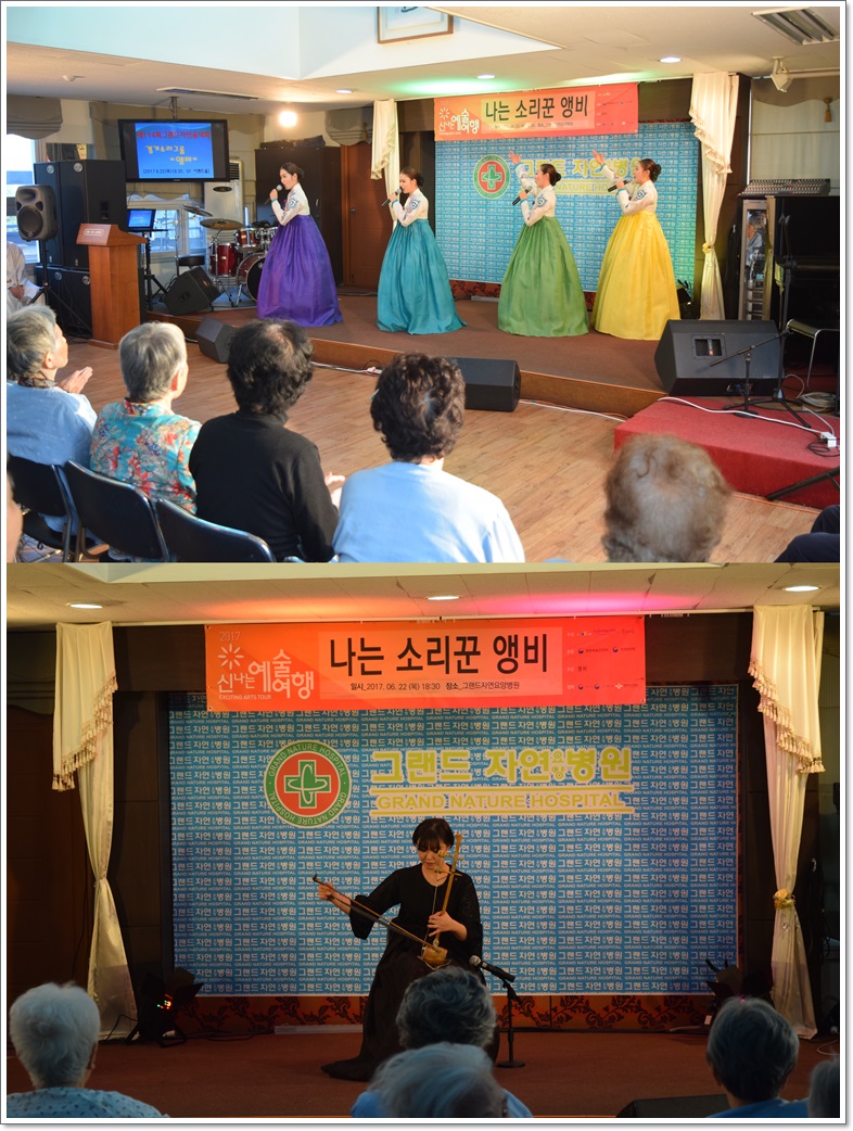 지난 6월 22일 그랜드자연요양병원은 경기소리민요 그룹 <앵비>의 공연으로 제114회 그랜드자연음악회를 열었다. <앵비>는 우리가 흔히 알고 있던 민요뿐 아니라 가려졌던 민요 레퍼토리를 무용, 연극 등과 함께 선보이며 우리소리의 아름다움을 청각적, 시각적으로 표현하였다. 금강산타령, 매화타령, 경복궁타령 등 우리 어르신들이 좋아 하시는 민요와 해금, 피리의 연주 등 어르신들과 흥겨움을 함께 나누었다.