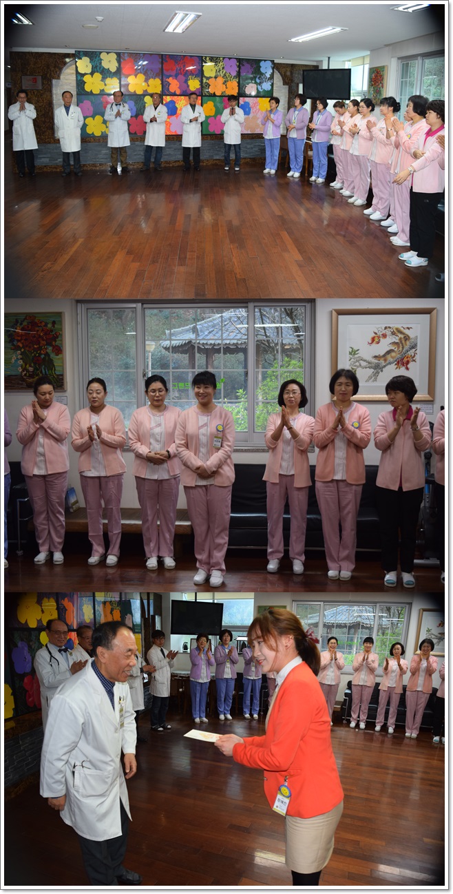 그랜드자연요양병원은 지난 3월 6일 1층 로비에서 전직원들이 참석한 가운데 그랜드자연 월례회를 가졌다. 이날 이재일병원장은 환절기 어르신들 건강관리에 만전을 기하자고 강조 하였으며 이어서 신입직원들의 인사가 이어졌고 3월에 생일을 맞이한 직원들을 축하하며 작은 정성으로 마련된 선물이 전달되었다. 봄의 설레임으로 시작되는 3월을 준비하는 마음으로 "그랜드 그랜드 힘!"의 구호와 함께 3월 월례회를 마쳤다.
