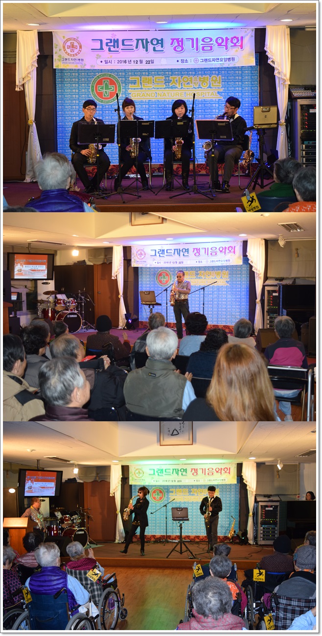 지난 12월 22일 그랜드자연요양병원은 제108회 그랜드자연음악회를 "필로스 색소폰 연주단"의 초청연주로 열었다.