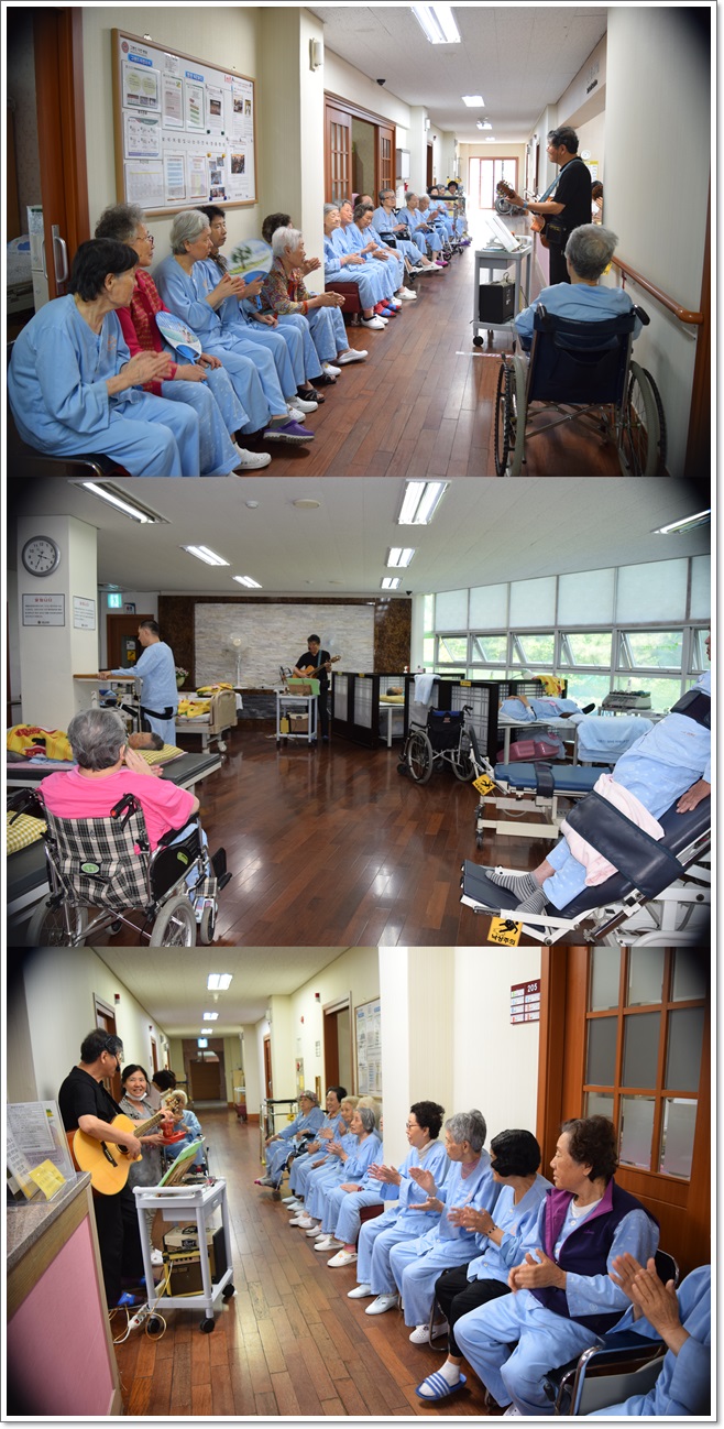 6월의 병동으로 찾아가는 작은음악회 페이지 정보 작성자 최고관리자 작성일16-06-14 17:29 조회1,321회 댓글0건 이전글 다음글 목록 본문 그랜드자연요양병원에서는 거동이 힘든 어르신들을 위해 각 병동 및 재활센터로 찾아가서 여는 찾아가는 작은 음악회를 열고 있다. 댓글목록 등록된 댓글이 없습니다. 이전글 다음글 목록