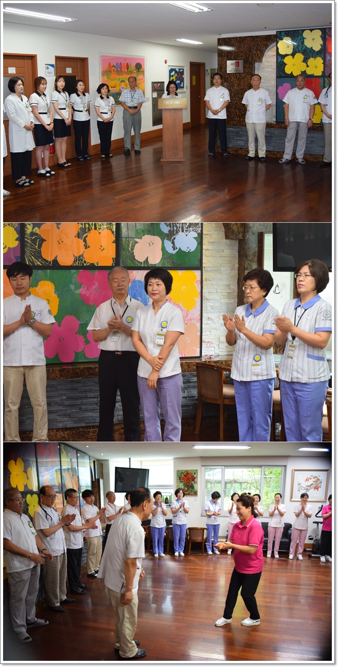 그랜드자연요양병원은 지난 8월 1일 1층 로비에서 전직원들이 참석한 가운데 그랜드자연 월례회를 가졌다. 이재일 병원장은 날씨가 더워짐에 있어 어르신들의 건강관리에 더 각별한 주의를 당부하였으며. 이어서 신입직원들의 인사가 이어졌고 8월에 생일을 맞이한 직원들을 축하하며 작은 정성으로 마련된 선물이 전달되었다.