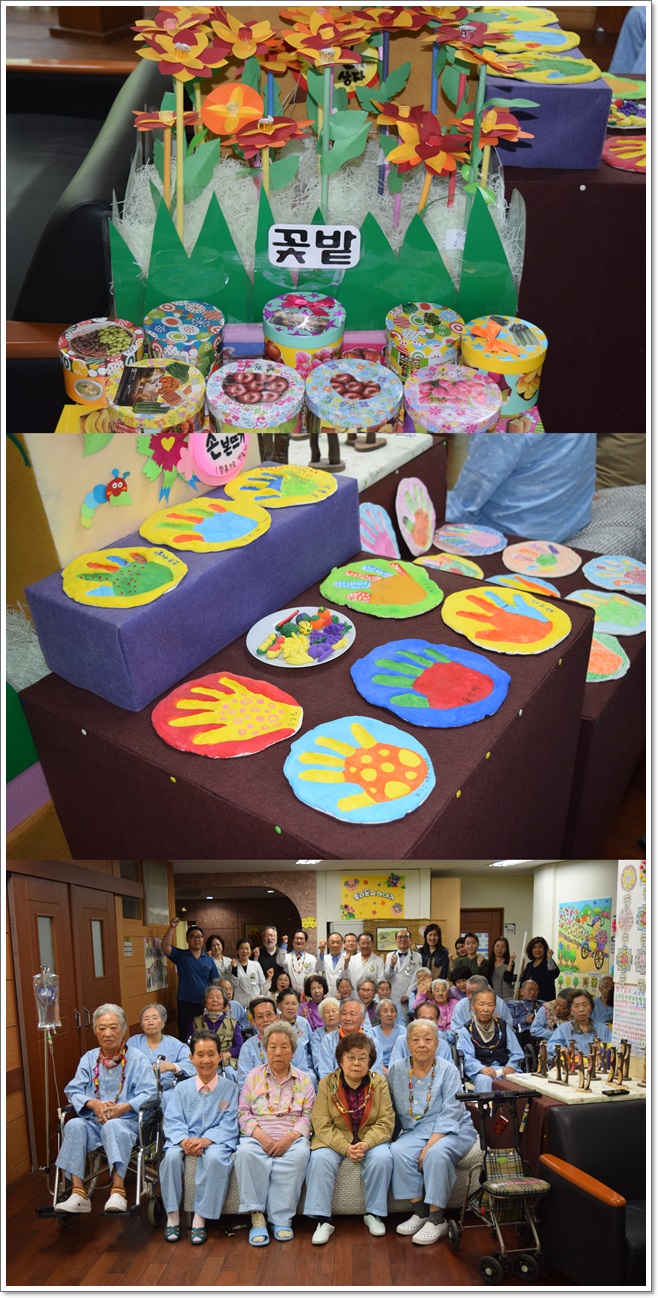 그랜드자연요양병원은 지난 4월 26일 2층 문화홀에서 <미술심리치료 작품 전시회 - 그림으로 마음읽기> 작품전을 열었다. 이재일 병원장은 2010년 9월 14일 첫수업을 시작으로 한 주도 빠짐없이 어르신들을 위해 미술치료 수업을 해주신 윤석환 교수님께 감사의 말씀을 전하며 함께 수업을 해주신 선생님들께 감사장을 수여 하였다. 미술의 기법을 이용한 작품들이지만 그 과정속에는 눈과 손의 힘을 기르는 활동과 공간 지각 능력을 갖게 하는 활동들이 포함되어 있다. 작품을 감상한 후 어르신들과 다과의 시간을 가지며 지난 수업의 이야기꽃을 피웠다.
