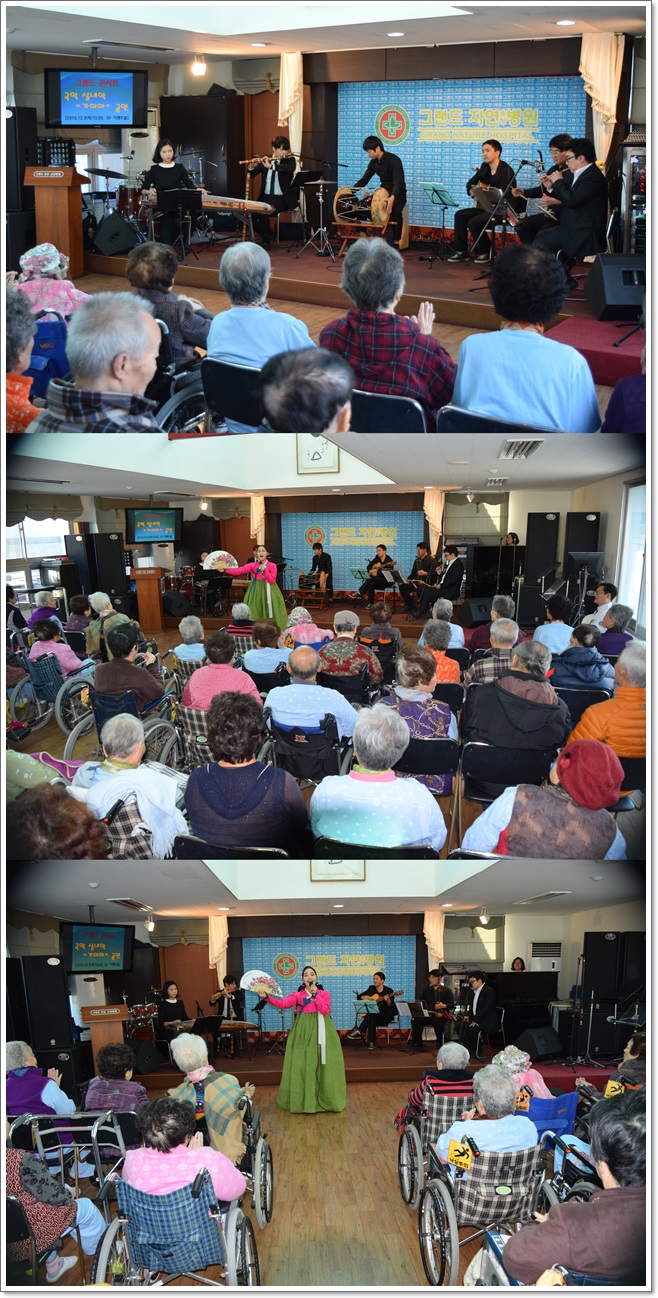 국악 실내악 - "가이아"공연 페이지 정보 작성자 최고관리자 작성일15-12-07 12:02 조회1,693회 댓글0건 이전글 다음글 목록 본문 지난 12월3일 그랜드자연요양병원은 국악 실내악 "가이아"의 초청공연으로 그랜드 콘서트를 열었다. 심청가, 춘향가를 비롯하여 추억의 가요메들리 등 평소 익숙한 곡들로 어르신들의 몸과 마음을 힐링할 수 있는 시간을 갖게 해주었다. 댓글목록 등록된 댓글이 없습니다. 이전글 다음글 목록