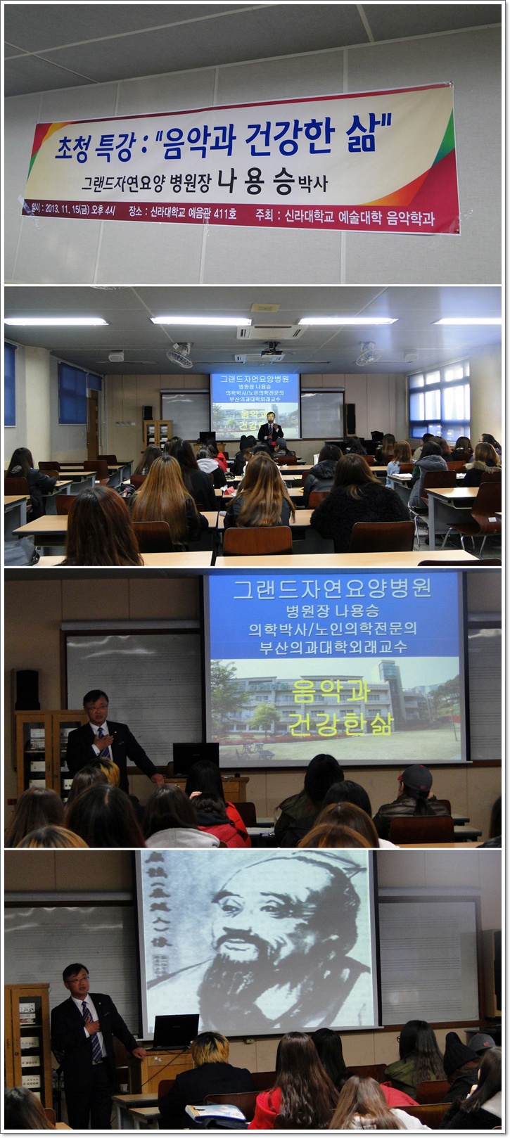 그랜드자연요양병원 나용승 병원장, 신라대학교 초청 강연회 가져. 페이지 정보 작성자 그랜드자연병원 작성일13-12-09 11:54 조회2,161회 댓글0건 이전글 다음글 목록 본문 그랜드자연요양병원 나용승 병원장은 지난 11월 15일 신라대학교 예음관에서 <음악과 건강한 삶>에 관한 초청 강연회를 가졌다. 댓글목록 등록된 댓글이 없습니다. 이전글 다음글 목록