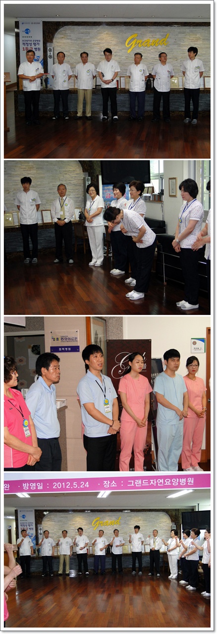 지난 10월 2일 그랜드자연요양병원은 1층 로비에서 전직원들이 참석한 가운데 그랜드자연 10월 월례회를 가졌다. 나용승 병원장은 환절기에 환우들과 직원들 자신의 건강관리에 만전을 기하기를 당부하셨다. 이어서 신입 직원들의 소개와 따뜻한 박수로 이들을 맞이한 뒤 "그랜드 그랜드 힘!"의 구호로 10월 월례회를 마쳤다.