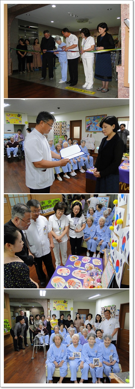 그랜드자연요양병원은 지난 10월 4일 2층 문화홀에서 <미술 심리 치료 작품 전시회 - 그림으로 마음읽기> 9기,10기 작품전을 열었다. 이 날 전시회에는 나용승 병원장, 석송숙 간호부장을 비롯해 한국 미술 심리 치료 협회 윤석환 지도교수와 관계자들 그리고 환우, 그 가족들이 참석하였다. 나용승 병원장은 유난히 더웠던 지난 여름에도 마다않고 맨투맨 수업을 해 주신 선생님 한분 한분께 감사하며 어르신들이 작품활동을 통해서 병상생활에 안정을 찾을수 있도록 한결같은 도움을 주시고 계심에 감사 드린다고 축사에 대신하였다. 또한 김경애, 김가람, 박미자, 김정애 선생님께 감사장이 수여 되었다.