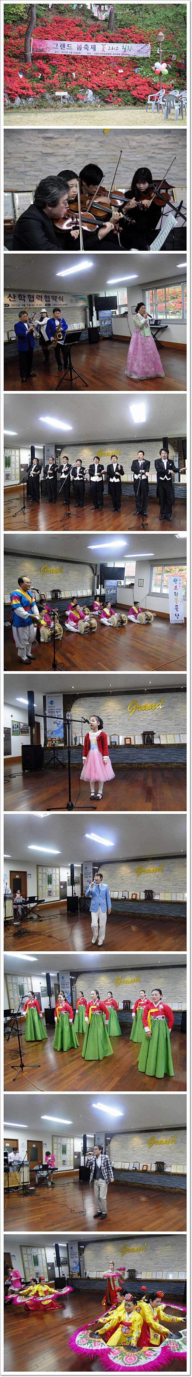 <문화가 함께 하는 자연치료 - 꽃 그리고 힐링> 그랜드자연요양병원은 봄을 맞아 지난 4월 20일 '문화가 함께 하는 자연 치료 - 꽃 그리고 힐링'을 열었다. 이번 공연은 그랜드자연요양병원 문화 예술 프로그램의 하나로 진행되었는데 공연에 초청된 라메르 오케스트라, 온누리 오페라단, 한소리 풍물단, 예그리나 공연단 등은 어르신들께 문화의 향기를 전파하며 틀에 박힌 공연이 아닌 어르신 관객들과 소통하면서 하나 되는 시간을 가졌다. 영산홍과 진달래 그리고 야생화가 어우러진 그랜드자연요양병원의 파이에온 잔디광장에서 열린 이번 공연은 그랜드자연요양병원의 환우와 환우 가족을 위안하고 지역 주민들과 함께 어울릴 수 있도록 다양한 먹거리 또한 무상으로 제공되었다. 그랜드자연요양병원은 노년의 우아한 삶을 유지하고 품격 높은 문화속에서 건강관리가 자연스럽게 이루어지는 문화가 있는 요양병원이 되기 위해 노력하고 있다.