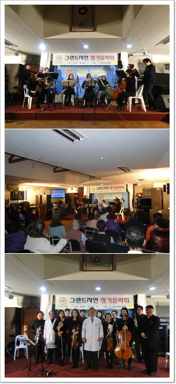 지난 1월 24일 열린 그랜드자연 신년 음악회는 신라대 겸임 교수인 장민수 교수의 진행으로 비타민 실내악의 "클래식 토크"로 이루어졌는데, 비타민 실내악은 아름답고 평화로운 세상을 만들자는 국제 로타리 정신을 전파하기 위해 많은 음악회를 통해 음악과 나눔의 정신을 전하는데 앞장서고 있다. 이날 공연에서도 환우들을 위해 '메기의 추억' 'G선상의 아리아'를 비롯해 어르신들이 좋아하는 옛가요를 선보이면서 함께 하는 시간을 가졌다. 장교수는 어르신들께 다시 뵐것을 약속드리며 이날 행사를 마쳤다.
