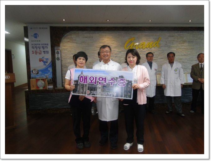 그랜드자연요양병원은 지난 3월 5일 월례회를 통해 전반기 우수직원에 대한 시상식을 가졌다. 이날 수상자는 3병동 간병주임 황혜숙 여사와 간호과 김미화 선생님이 각각 수상하였다. 수상자들은 10월 후반기 우수직원들과 함께 해외 연수에 참여하게 된다. 그랜드자연요양병원 나용승병원장은 그동안의 노고를 치하하며 여러분 모두가 주인공이 될수 있다며 수상자들과 임직원들을 격려하였다.