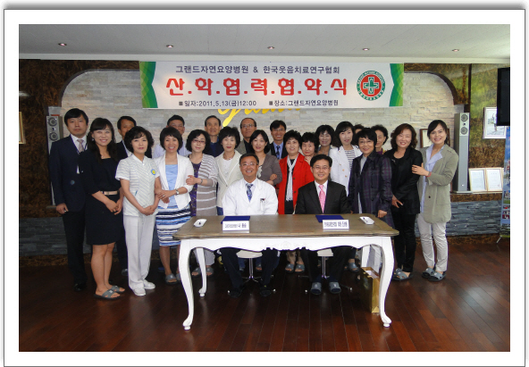 그랜드자연요양병원(병원장 나용승)은 지난 5.13일 한국웃음치료연구협회(회장 조상영)는 상호간 전문인력 교류와 시설의 활용을 바탕으로 공동으로 웃음을 전파하고 양질의 서비스 창출과 지역사회 발전에 기여하자는 산학협력 협약식을 가졌다. [행사현장 스케치]