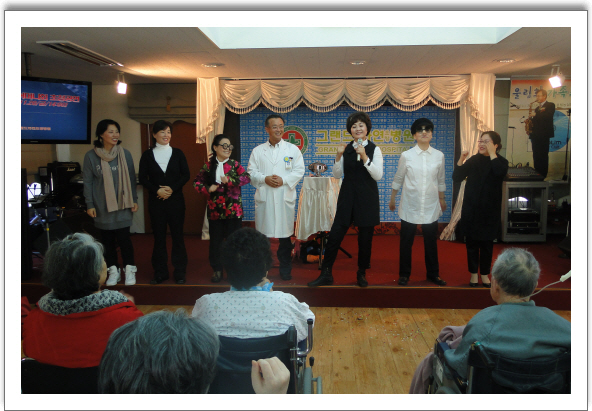 그랜드자연요양병원은 지난 26일 부산색동어머니회 초청공연을 가졌다.공연은 시낭송,구연동화,이수일과 심순애 단만극,웃음이 있는 마술 순서로 진행되었다.이 날 이숙례회장은 회원들과 함께 병원생활을 하는 환우들에게 준비한 단막극과 마술선물을 선사하였다.어머니의 힘으로 만들어진 단막극 "이수일과 심순애" 코너에서 참석한 환우들은 웃음과 박수가 넘치는 오후의 시간을 보냈다. [부산색동어마니회 공연中에]