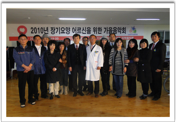 그랜드자연요양병원은 지난 11.25일 5층 이벤트실에서 제37회 그랜드자연음악회를 가졌다.이번 공연은 해운대색소폰과 나용승병원장의 색소폰합주,밸리댄스,흥겨운 탈춤과 GNH정기연주와 초대가수의 공연순으로 진행되었다.특히 이번음악회는 국민건강보험공단 부산남부지사와 함께 진행되어 더욱 알찬 늦가을 음악회로 마무리 지어졌다.