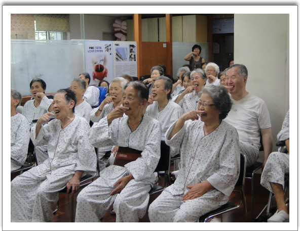 [미소천사] 매주 목요일 오후3시 그랜드자연요양병원에서는 웃음 치료의 시간을 가지고 있습니다. 아니죠! 이제는 웃음치료를 다함께 즐기고 있습니다. 서로 서먹하던 환우들도 이 시간을 통하여 서로 소통하게 됩니다. 병원에서 터져나오는 웃음 소리.... 매주 목요일 당신에게 들려 드립니다. 입꼬리가 올라가는.....소리! 참 좋다.