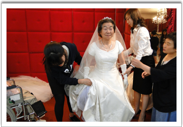 지난5.11일 부산여대로 간 그랜드자연요양병원 가족들은 오는5.15일 있을 "5월愛 병상금혼식"을 위한 드래스와 턱시도 피팅을 하는 시간을 가졌다. 금혼식 커플 3쌍은 각각 드래스와 턱시도를 입어보면서 연신 미소를 머금으며 자신의 변화된 모습을 거울을 통해 바라보았다. 참가자들은 이제 몇일 앞으로 금혼식이 다가왔다며 토요일의 기다림에 대한 기대감을 빚추었다.이 날 김효신교수(부산여대 학생처장/웨딩이벤트과 학과장)는 어르신들의 밝은 모습에서 오늘 하루 병상생활을 잊고 좋은 활력소를 얻으신것 같다면서 참여한 부산여대 재학생들도 "효"의 의미를 되새겨 보는 좋은 하루 였다며 웨딩 피팅의 의미를 부여하였다. 그랜드자연요양병원은 오는 5월15일 오전11시-오후2시까지 "5월愛 병상금혼식"을 파이에온잔디광장에서 가진다. 문의:051-612-0075/010-7710-7088 이실장