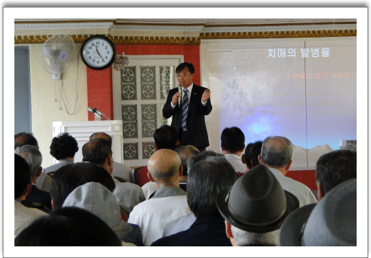 지난 5.13일 나용승 병원장(그랜드자연요양병원장)은 대한노인회 부산남구지회 초청강의를 가졌다.이 날 강의 주제는 노인성치매를 바로 알자는 주제로 강의가 있었다.참석한 140여명의 부산노인회 남구지회 각경로당 대표들과 김형우 지회장은 이런 강의를 통해서 노인들도 사전에 각종 질병을 예방하는 상식을 갖출수 있다며 부정기적인 강의를 요청하겠다며 다음을 기약하였다.그랜드자연요양병원은 차후 부산남구노인회의 활동에 적극적인 지원을 약속하였다.