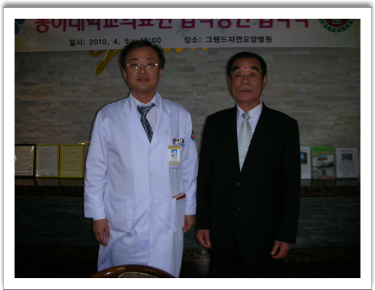 4.15일 신임 대한노인회 부산남구지회 지회장 김형우씨가 내원하셔서 본원의 시설을 둘러 보고 나용승 병원장과 환담을 나누었다. 대한노인회 남구지회와 본원은 각종행사시 의료자원봉사를 약속하고 나원장은 오는 5.13일 있을 대한노인회 남구지회 정기회의때 봄철 노인건강관리 요령에 대해 특강을 약속하였다.