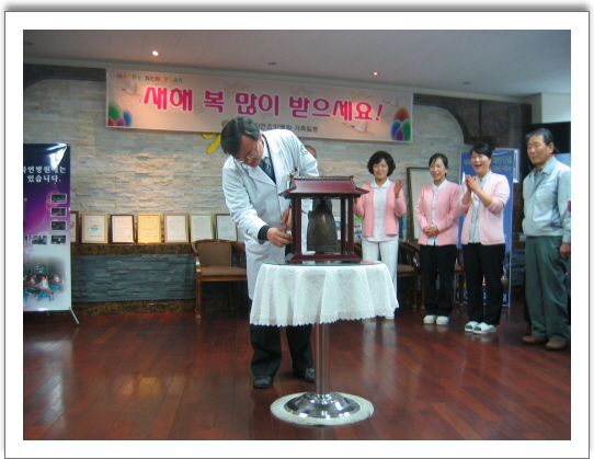 그랜드자연요양병원은 지난 1.2(토) 09:00 전직원들이 참여한 가운데 경인년 시무식을 가졌다.이 날 나용승 병원장은 신년사에서 호랑이에 비유되는 속담들을 여러가지 이야기하며 올 한 해도 전직원들이 백호랑이의 지혜와 용기를 가지고 업무를 추진한다면 무슨 일이든지 할 수 있다며 신년에도 "그랜드자연人"들의 사랑과 정성으로 환우들과 함께 미소 넘치는 병원만들기에 주력하자며 신년사를 대신하였다. 이어서 병원 로비에 있는 선덕대왕신종 미니어쳐 타종식을 새롭게 입사한 신입직원들과 함께 가졌다.타종의 의미는 "인간에게 정기를 불어 넣어주어 희망과 소망을 주고 재앙을 미리 알려주며 많은 사람들을 모이게하여 우리 생활속에 번영,행운,자유,우정,평화를 준다는 의미를 지니고 있다.