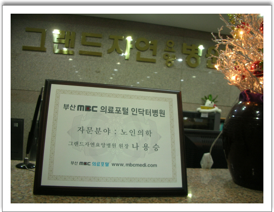본원은 2010년을 맞이하여 부산MBC의료포털 인닥터병원들 중에 노인의학 자문병원으로 참여 활동중입니다.부산시민들의 건강증진을 위해 보다 아름답고 풍요로운 삶의 도우미로서 역활을 다하겠습니다.많은 관심과 격려로 함께 해주시길 부탁드립니다.