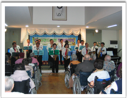본원은 지난1.28일 제27회 그랜드자연신년음악회가 이벤트실에서 열렸다. 이번 음악회에서는 강서문화원 실버색소폰연주단원들이 대거 참석하여 경인년의 문을 색소폰으로 힘차게 열었다.단원들 모두가 붉은색 넥타이로 포인트를 주고 연주에 최선을 다하는 모습이 세월을 잊고 색소폰음률에 실려 자유를 만끽하는 실버들의 또다른 모습들로 보였다.2번째 연주자로 나선 플룻과 피아노의 앙상블 또한 참석한 관객들에게 맑은 목소리와 어우러짐의 또 다른 모습을 선사하였다.1w간호사실의 못말리는 달타령은 참석한 모든 환우들과 가족들에게 큰 웃음을 선사하였다.이어서 연주된 나병원장의 신년색소폰연주곡인 페르샤왕자에서 페르샤공주의 깜짝등장으로 잠시 미소를 머금게 한 시간도 있었다.본원 김수고라 약사가 속해있는 "초우"회의 아코디언과 오카리나 연주도 신년음악회에 잘 조화를 이루었다.함께 자리한 100여명의 환우와 병원가족들과 연주단의 신년음악회는 제2의 심수봉과 지쎄레나를 남기고 다음을 기약하였다.