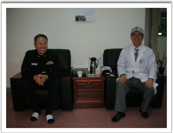지난 2.5일 본원에 세종대왕함 주임원사께서 내원하였다.이 주임원사는 세종대왕함 장병들이 펼치게 될 자원봉사활동 내용을 세부적으로 조율하고 본원의 시설을 둘러 보았다.이 날 나병원장은 "장병들은 자원봉사를 통해 노인에 대한 공경심과 孝에 대해 새롭게 인식하는 계기"가 될 것이라며 봉사활동의 의미를 부여하였다.