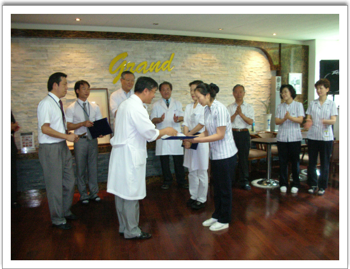 그랜드자연요양병원은 7월1일 오전9시 기본필수요원을 제외한 전 임직원이 참석한 가운데 7월 월례회가 1층 게스트홀에서 열렸다.새로운 7월을 맞아 참석자 모두는 2009년 후반기에도 멈추지 않은 그랜드자연요양병원 만들기에 최선을 다하자며 각자의 각오를 다졌다.월례회에 처음 참석한 신입요양보호사들의 반가운 인사와 월간우수사원에 대한 시상식도 가졌다.이번 달 우수사원은 간호과의 양삼미 외래주임과 영양팀의 최성미 영양팀장이 각각 수상하였다.특히,최성미 영양팀장은 그랜드자연병원의 모든 영양팀에게 수상의 영광을 돌렸다.나용승 병원장은 이 날 하계 병원의 혹서기 안전대책과 쾌적한 병상관리는 기본이라며 병원은 환자와 환자의 가족들을 위한 최선의 서비스를 2009년 후반기에도 기본을 충실히 이행하는 생각의 깊이가 다른 그랜드자연요양가족이 되자고 강조했다.