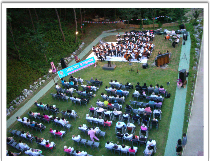 그랜드자연요양병원은 제21회 그랜드자연음악회를 지난 7.30(목)19:00 본원의 파이에온잔디광장에서 가졌다.이 날 음악회에는 제7회 정기연주회(8.22/부산문화회관 대극장)를 앞두고 있는 아코르청소년오케스트라와 부산음악사랑회 그리고,환우가족의 플룻&바이올린(연주자:최현주,이인경)이 초청되어져 클래식의 선율이 지루한 장마로 지쳐있는 환우가족과 그랜드인의 여름밤 무더위를 식혀주었다. 이날 연주회에는 환우와 그 가족들에게 그 어떤 무대보다도 값진 감동을 주었다.부산지방 병무청장 이승억,김문희 의료경영회장,이희철 부산시립정신병원장,배명조 한자녀더갖기운동본부장,김성권 부산의과대학 응급의학과장,한진석 압소바 부산지시장,이승호 부산음협회장, 고신대학교 김성환교수,고신대학교 전창완교수등 많은 내빈들도 음악회를 찾으셨다. 아코르청소년오케스트라의 지휘자인 정홍기님의 지휘로 EXPLOSIVE를 시작으로 1시간여의 음악의 바다에 빠져 있었다.소프라노 이경자,바리톤 한성권님의 7월의 어느 멋진날이 파이에온잔디광장을 또 다른 분위기를 연출하였다. 여름 밤! 가곡과 아리아가 있는 밤은 9시를 가르키고 있었고 병원생활의 기억 한켠에 또다른 감흥을 주었다.진행은 KBS 박근아님이 수고해 주셨다. -그랜드자연요양병원 기획실-