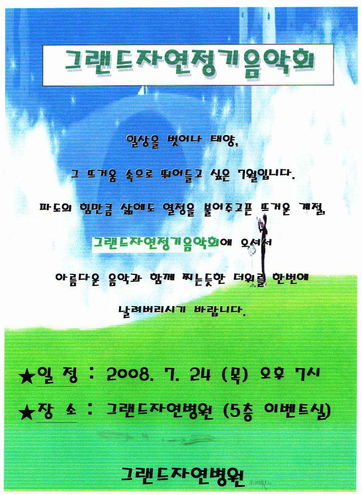 7월 그랜드정기음악회 페이지 정보 작성자 그랜드자연병원 작성일08-07-03 12:55 조회2,519회 댓글0건 이전글 다음글 목록 본문 .. 댓글목록 등록된 댓글이 없습니다. 이전글 다음글 목록