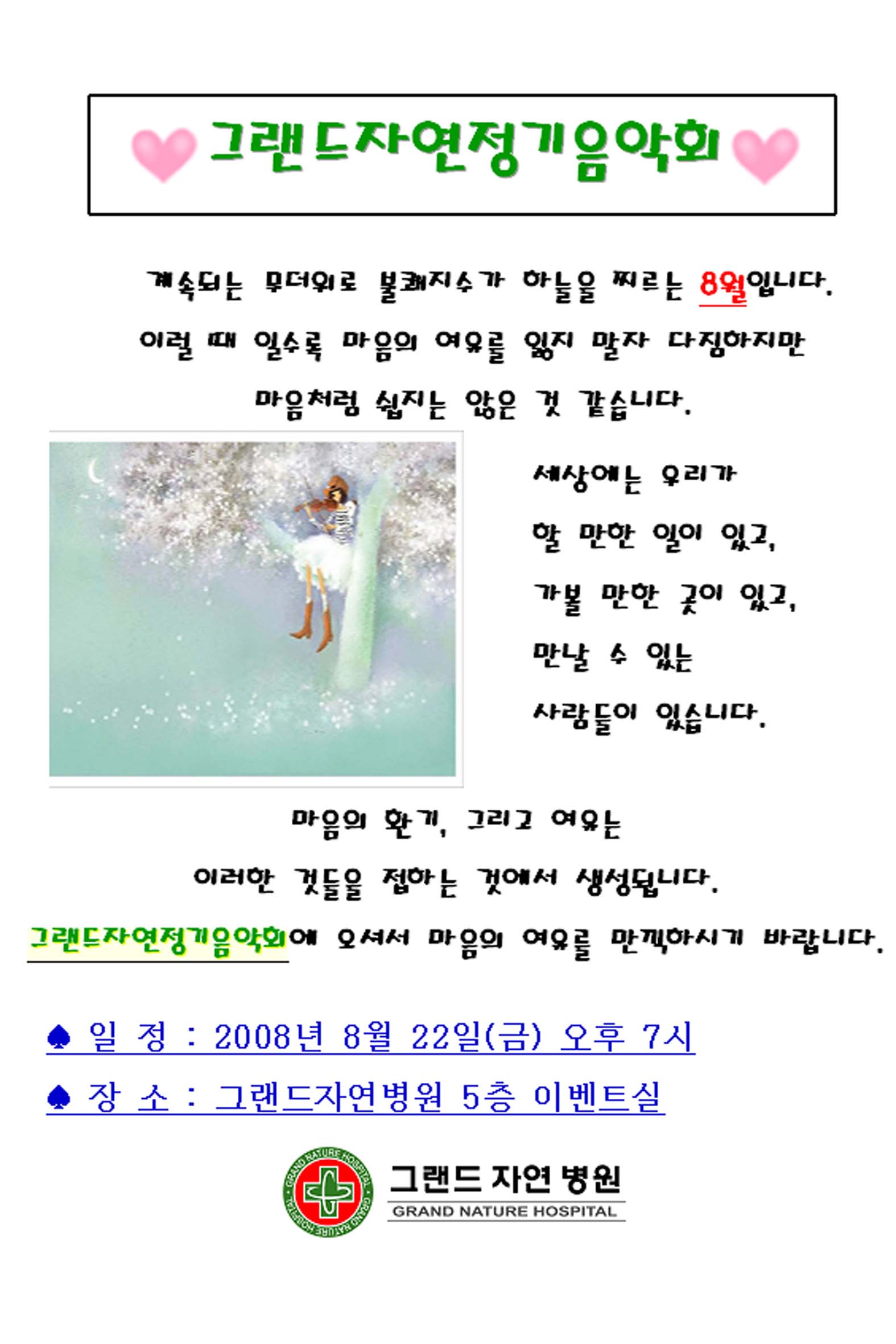 8월 그랜드자연정기음악회^^ 페이지 정보 작성자 그랜드자연병원 작성일08-08-08 10:10 조회2,472회 댓글0건 이전글 다음글 목록 본문 .. 댓글목록 등록된 댓글이 없습니다. 이전글 다음글 목록