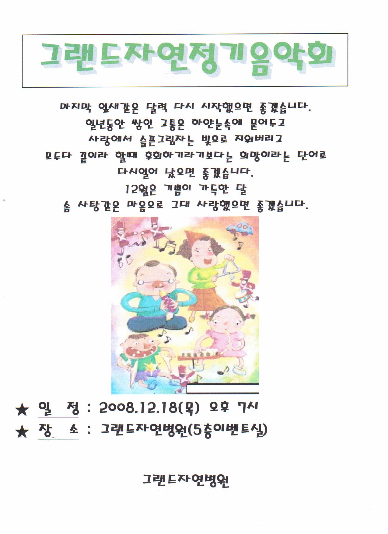 12월 그랜드자연정기음악회 페이지 정보 작성자 그랜드자연병원 작성일08-12-11 16:57 조회2,281회 댓글0건 이전글 다음글 목록 본문 .. 댓글목록 등록된 댓글이 없습니다. 이전글 다음글 목록