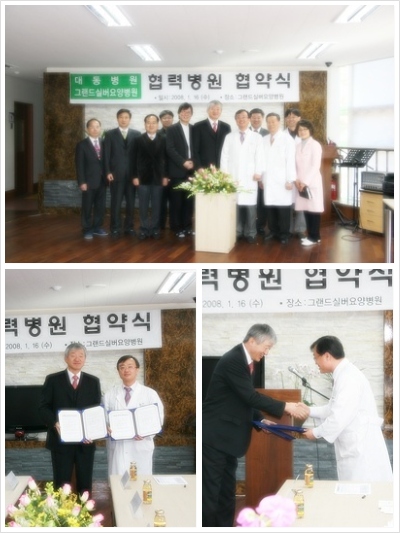 우리 그랜드 자연요양병원의 발전이 가속되고 있는 가운데 내일 16일 (수요일) 오전12시 30분에 병원 1층에서 동래 위치한 대동병원과 협력병원 협약식을 가졌습니다. 우수한 의료의 질과 의료발전을 위해 노력하겠습니다.