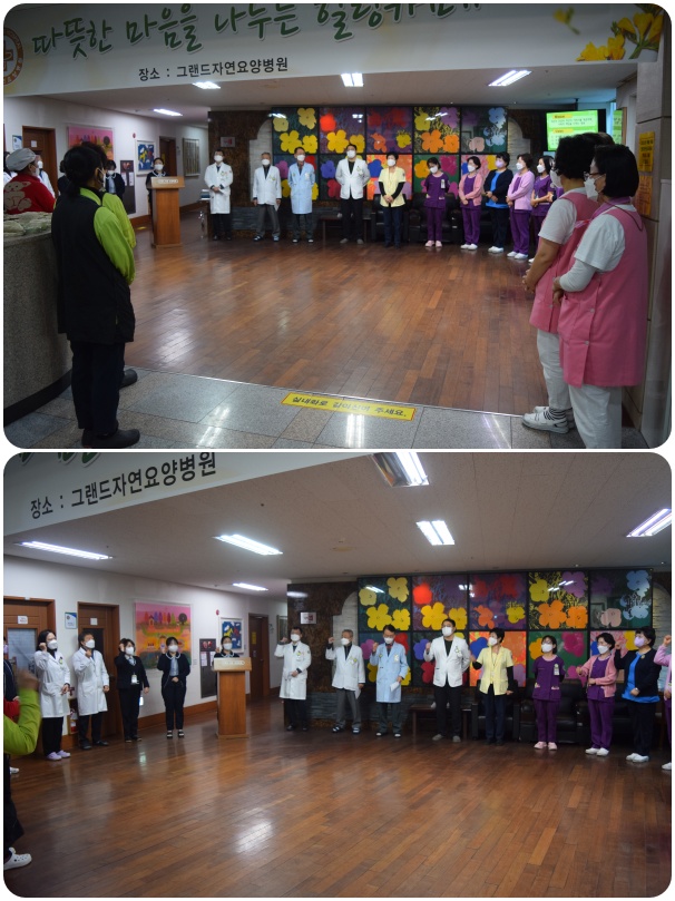 1월 2일 그랜드자연요양병원은 1층 로비에서 전직원들이 참석한 가운데 그랜드자연 시무식 및 1월 월례회를 가졌다.