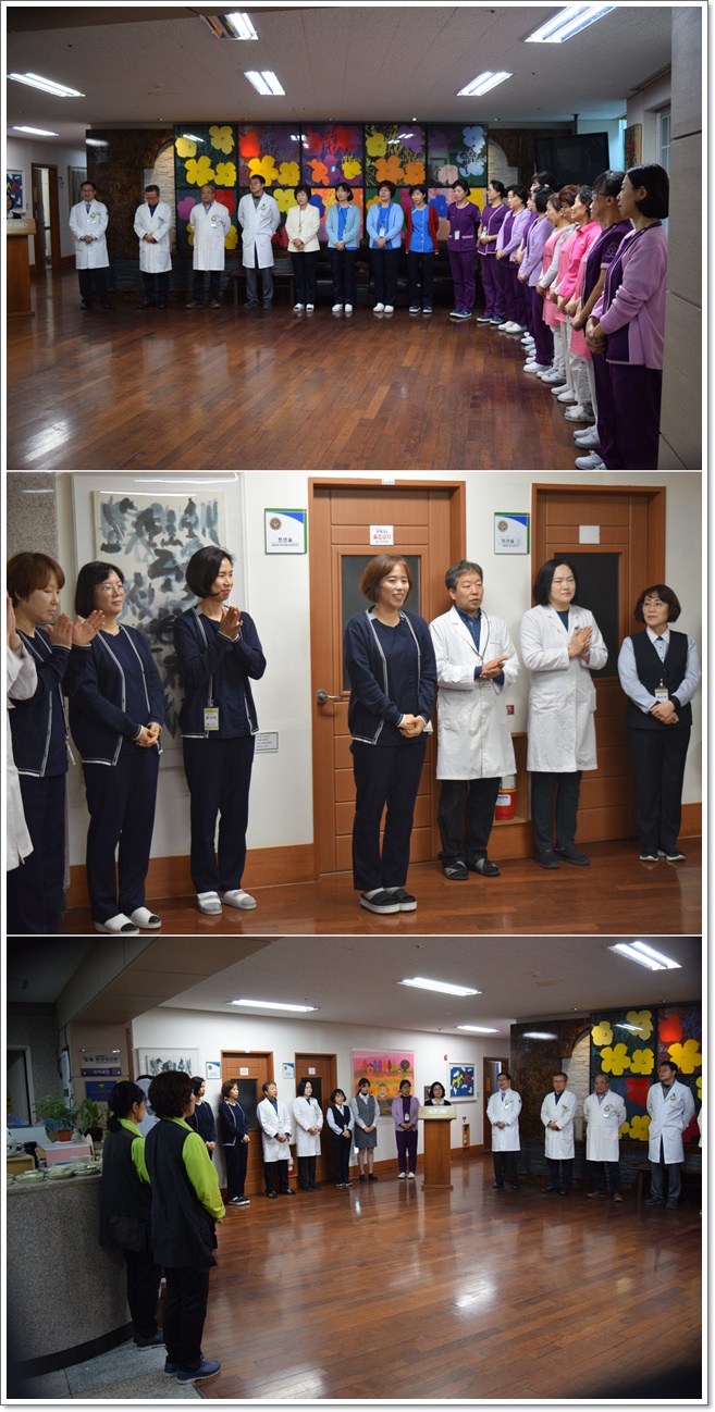 12월 2일 그랜드자연요양병원은 1층 로비에서 전직원들이 참석한 가운데 그랜드자연 12월 월례회를 가졌다. 이날 이재일 병원장은 한해를 잘 마무리하는 12월이 될 것을 강조하며 내년을 준비하는 한달을 만들자고 인사에 대신하였다. 이어서 신입직원들의 인사가 이어졌고 한해의 마지막 달 12월의 시작을 준비하는 마음으로 "그랜드 그랜드 힘!"의 구호와 함께 12월 월례회를 마쳤다.