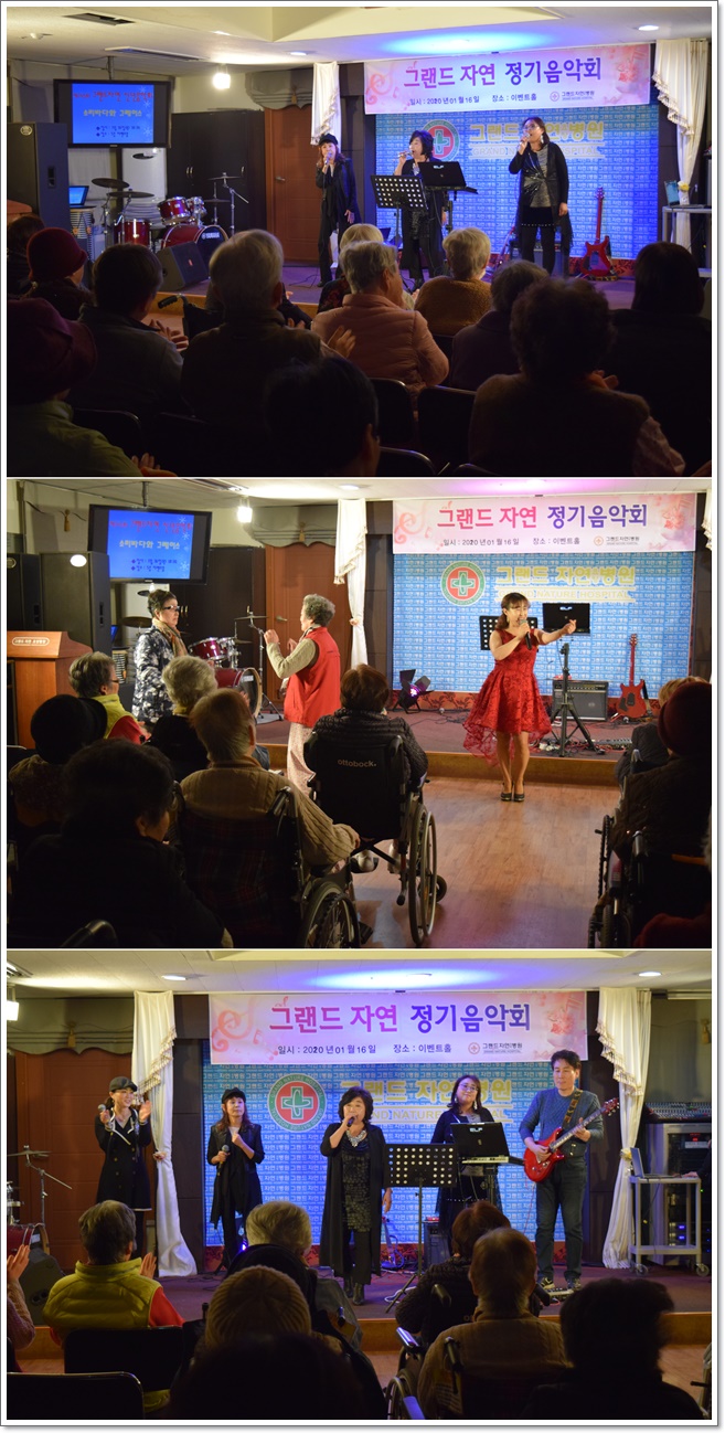 제145회 그랜드자연 신년음악회 - 소리바다와 그레이스 페이지 정보 작성자 최고관리자 작성일20-02-05 11:36 조회1,370회 댓글0건 이전글 다음글 목록 본문 그랜드자연요양병원은 1월 16일 '소리바다와 그레이스'를 초청하여 제145회 그랜드자연 신년음악회의 무대를 가졌다.sbs 환타스틱 듀오 <백지영 편>에서 최종 우승을 했던 장지은 회장을 비롯하여 회원들이 어르신들과 함께 즐거운 무대로 따뜻한 시간을 마련하였다. 댓글목록 등록된 댓글이 없습니다. 이전글 다음글 목록