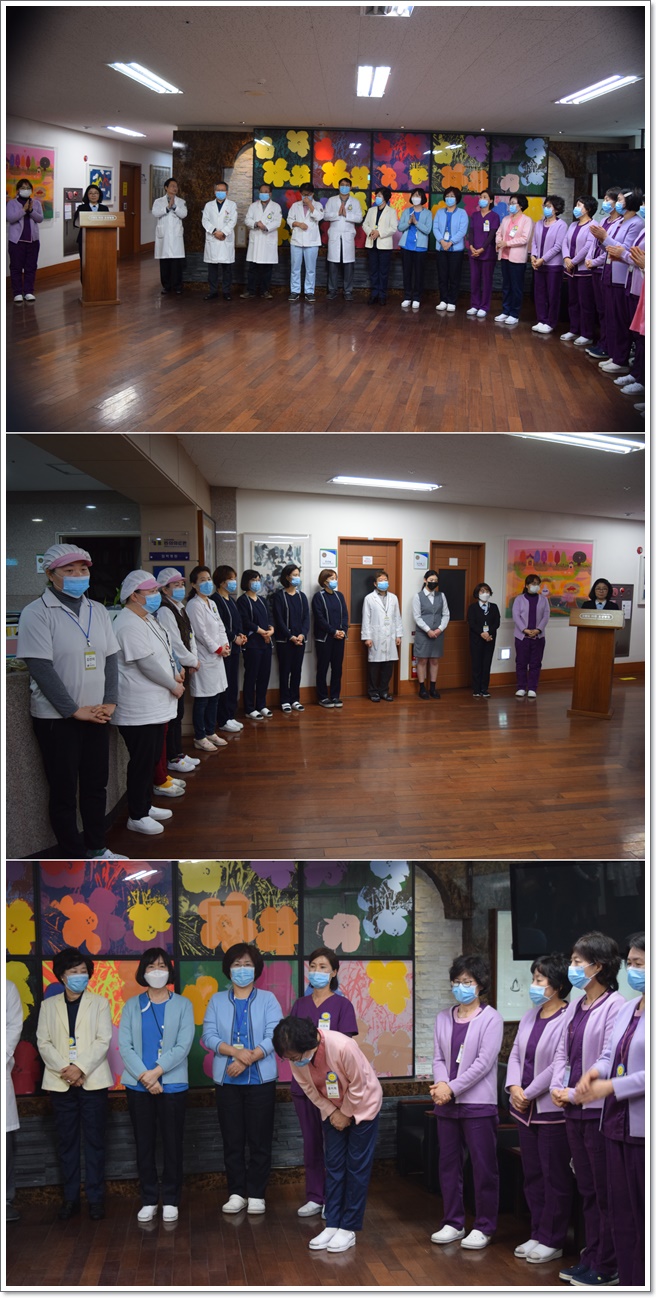 그랜드자연요양병원은 2월 3일 1층 로비에서 전직원들이 참석한 가운데 그랜드자연 월례회를 가졌다. 이날 이재일 병원장은 신종 코로나바이러스감염증이 확산되어 경계단계로 격상됨에 따라 면역력이 약한 어르신들의 감염 예방을 위해 어르신들 건강관리에 만전을 기하자고 강조 하였으며 이어서 신입직원들의 인사가 이어졌고 2월의 다짐을 외치며 2월 월례회를 마쳤다.