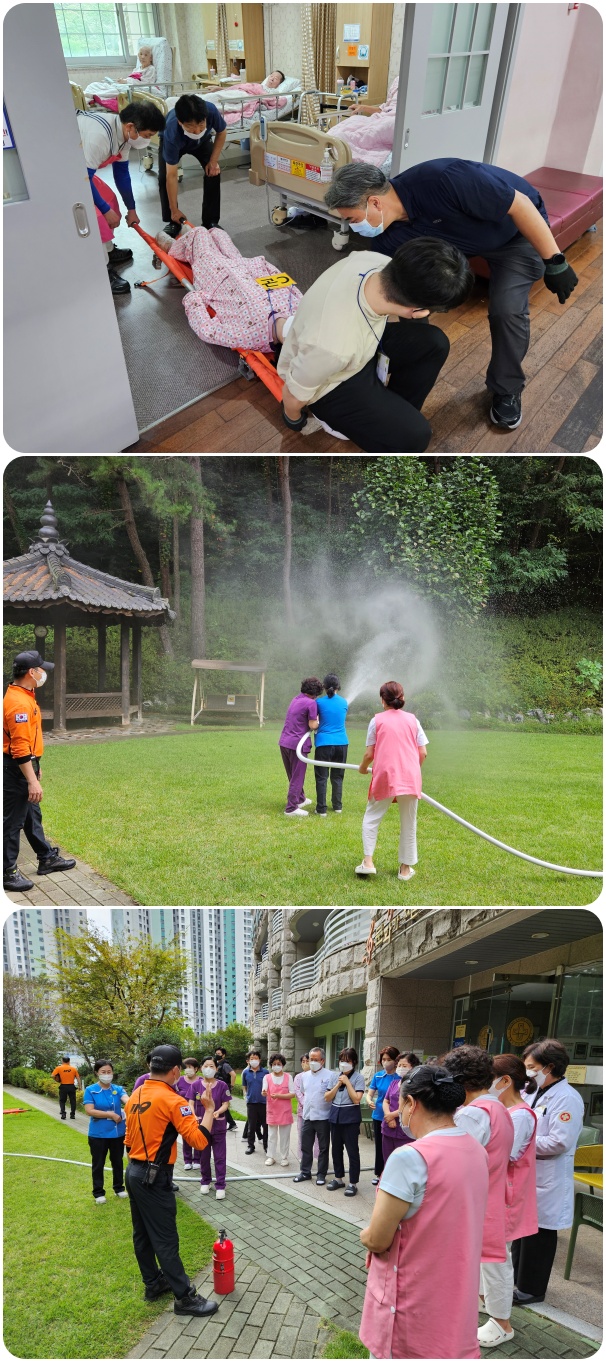 전직원 합동소방훈련 실시. 페이지 정보 작성자 최고관리자 작성일25-10-20 10:19 조회285회 댓글0건 이전글 다음글 목록 본문 그랜드자연요양병원은 10월 15일 남부소방서와 합동으로 소방교육 및 소방훈련을 실시하였다. 이날 훈련은 환자군에 따른 대피훈련, 초기소화, 등 화재초기 대응능력 강화를 위한 훈련으로 전직원을 대상으로 실시하였다. 댓글목록 등록된 댓글이 없습니다. 이전글 다음글 목록