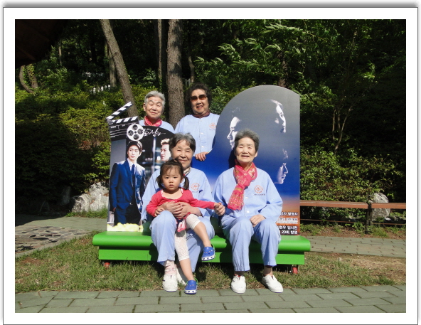 지난 5.24일 방영된 적도의 남자 촬영지인 그랜드자연요양병원에 새로운 장소가 준비되어졌다.다름 아닌 포토죤이다.촬영당일 배우들과 함께하지 못한 것이 아쉬웠다는 환우들과 직원들의 하소연(?)으로 포토죤을 해암정 정자옆에 설치하였다. 이 포토죤은 편안하게 앉아서 촬영할 수 있는 좌석과 휠체어에 앉아서도 촬영 할 수 있도록 제작 되어졌다. 기념촬영 사진은 한달간 무료로 "한장의 나눔사진"으로 만들어져 가져 갈 수 있다. -촬영문의:1층 총무팀 -촬영시간:점심시간(환우 및 직원대상 12:40-13:40) *고객 요청시 수시촬영 [한장의 나눔 사진]