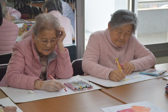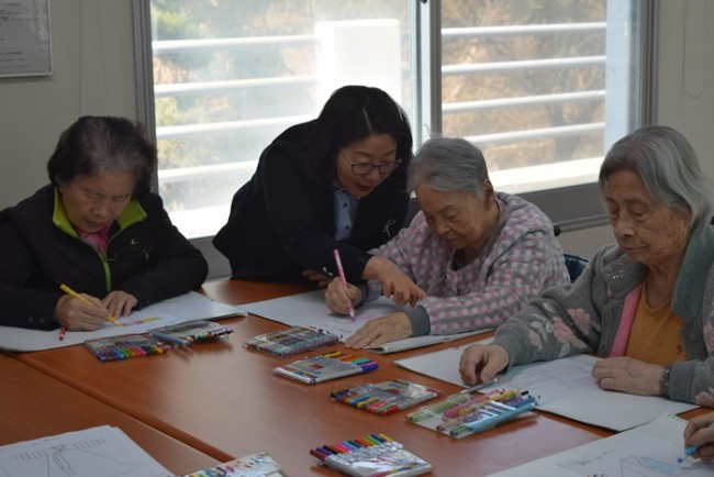 그랜드자연요양병원에서 활용하고 있는 어르신들을 위한 인지재활 특화프로그램중 미술요법은 그림으로 어르신들의 마음을 읽는다. <한복 꾸미기>는 익숙한 주제(전통 의복)로 흥미를 유발하고 소근육 운동으로 집중력을 향상 시키는데 도움을 준다.